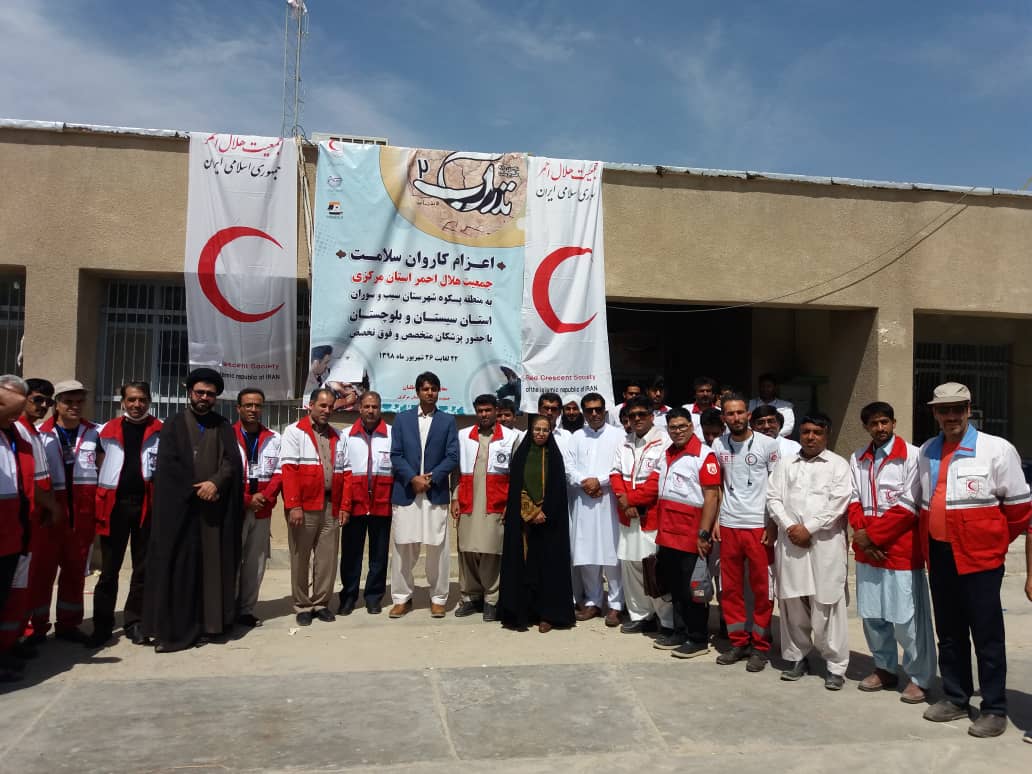 کاروان سلامت هلال احمر استان مرکزی با مشارکت دانشگاه علوم پزشکی زاهدان در حال ارائه خدمات درمانی به مردم منطقه پسکوه سیب و سوران هستند.