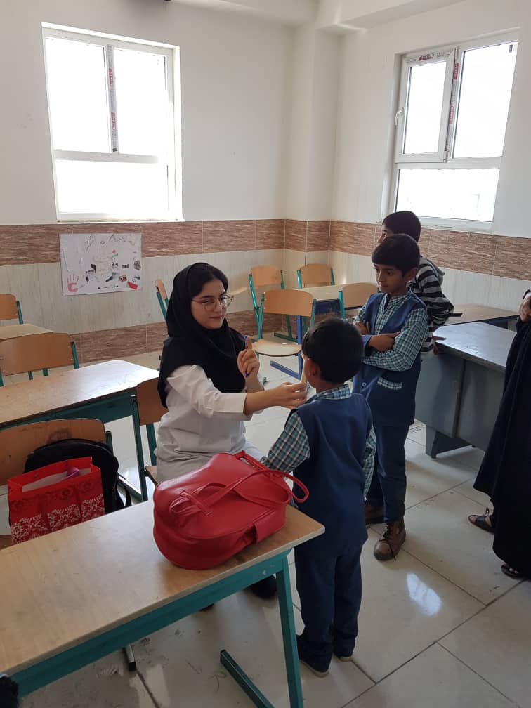 مشاوره و ویزیت رایگان دانش آموزان یک دبستان در روز دانش آموز توسط داوطلبان سلامت