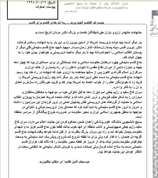 شایان ذکر است: در این مراسم بیانیه ای از طرف بسیج دانشجویی دانشگاه با تاکید بر امتداد مسیر شهداء و مبارزه با استعمار قرائت شد.