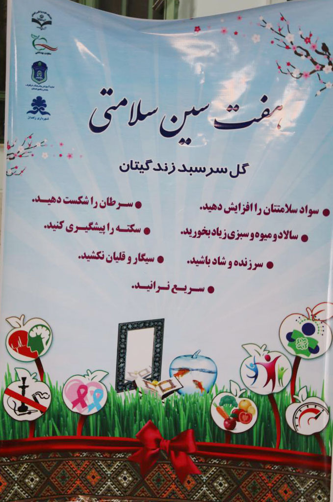 امسال علاوه بر سبزه و سیر و سکه و سایر سین ها، معاونت بهداشتی دانشگاه علوم پزشکی زاهدان در اقدامی ابتکاری، هفت سین سلامت را به وسعت تمام جامعه گسترانید.