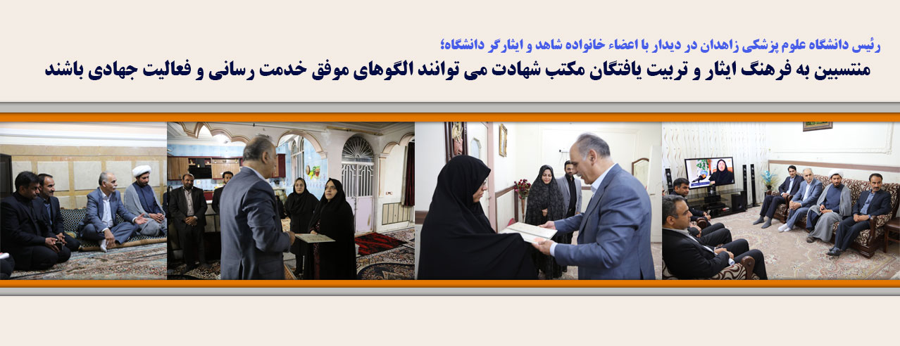 رئیس دانشگاه علوم پزشکی زاهدان با تاکید برجایگاه ویژه ایثارگران و خانواده معظمشان گفت: بزرگداشت یاد و خاطره شهداء و ایثارگران ارج نهادن به این عزیزان یک باور عمومی و یکی از مبانی فرهنگ سازمانی در دانشگاه علوم پزشکی زاهدان است و هیچ یک از همکاران ما برنامه هایی از قبیل دیدار با خانوداه شهداء را به عنوان حرکت های سمبلیک و نمادین تلقی نمی نمایند.