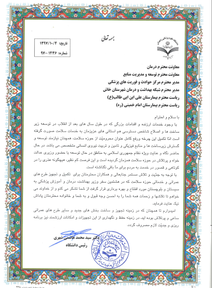با توجه به پی گیری ها، خدمات و اقدامات همکاران در زمینه آماده سازی و راه اندازی 14 طرح و پروژه بزرگ حوزه سلامت که با حضور وزیر پرتلاش و مردمی بهداشت افتتاح شد، رئیس دانشگاه در پیامی از این خدمات و تلاش های خالصانه و شبانه روزی تقدیر و تشکر کرد.