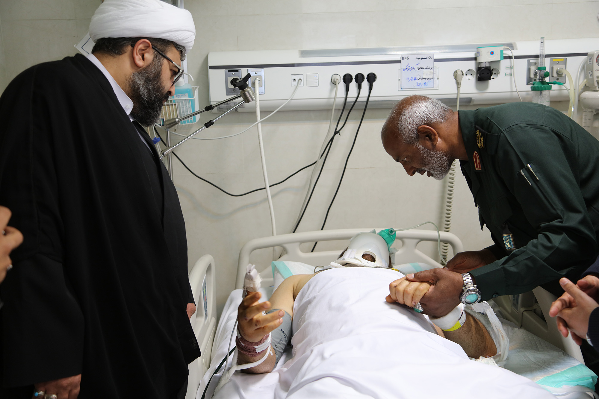 عیادت فرمانده قرارگاه قدس جنوب شرق و دادستان زاهدان از مجروحان حادثه تروریستی و تقدیر از خدمات کادر امداد و درمان