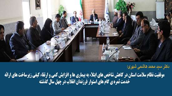 موفقیت نظام سلامت استان در کاهش شاخص های ابتلاء به بیماری ها و افزایش کمی و ارتقاء کیفی زیرساخت های ارائه خدمت ثمره ی گام های استوار فرزندان انقلاب در چهل سال گذشته