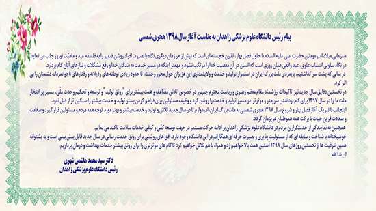 پیام رئیس دانشگاه علوم پزشکی زاهدان به مناسبت آغاز سال ۱۳۹۸ هجری شمسی: