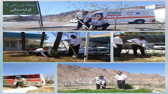 کاشت درخت در پایگاه های اورژانس شهری و جاده ای مرکز مدیریت حوادث و فوریت های پزشکی زاهدان؛ هر فرشته یک درخت