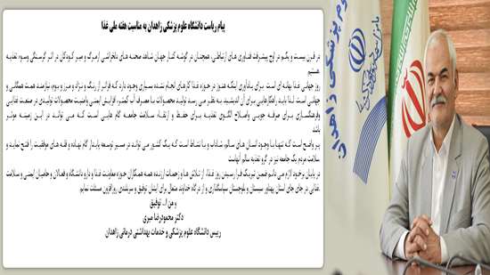 پیام ریاست دانشگاه علوم پزشکی زاهدان به مناسبت هفته ملی غذا