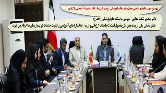 بیمارستان های آموزشی دانشگاه علوم پزشکی زاهدان توسط ارزیابان اعزامی از 5 دانشگاه علوم پزشکی از منطقه آمایشی 8 کشور اعتبار بخشی شد.